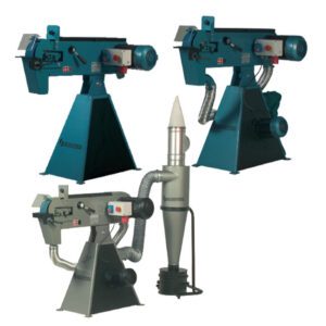 Our belt grinders feature powerful motors, quick belt change systems, adjustable settings, built-in exhaust systems, and advanced safety mechanisms such as emergency stops and motor brakes. They are designed for precision, efficiency, and safety.