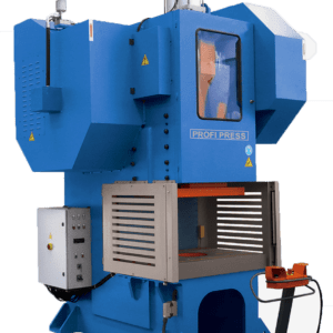 Suitable to carry out tasks involving deep-drawing, cutting, punching and stamping. Profi Press mechanical presses can be used for various applications in many different industries: the automotive, railway, aerospace, white goods, food, transportation, construction and medical industries (for example) and many more related industries that use metal forming. C-frame mechanical presses are versatile machines that can be used in a wide variety of industries and are known for their strength, precision, and durability, making them a valuable tool for many manufacturing operations.  The PE-4 models have a ram equipped with 4 guides and a programmable control system and tonnages in the range from 30 to 315 ton. The PE-6 models have a ram with 6 guides and a programmable control system with tonnages from 125 up to 315 tons. Bespoke presses are also available so please enquire.