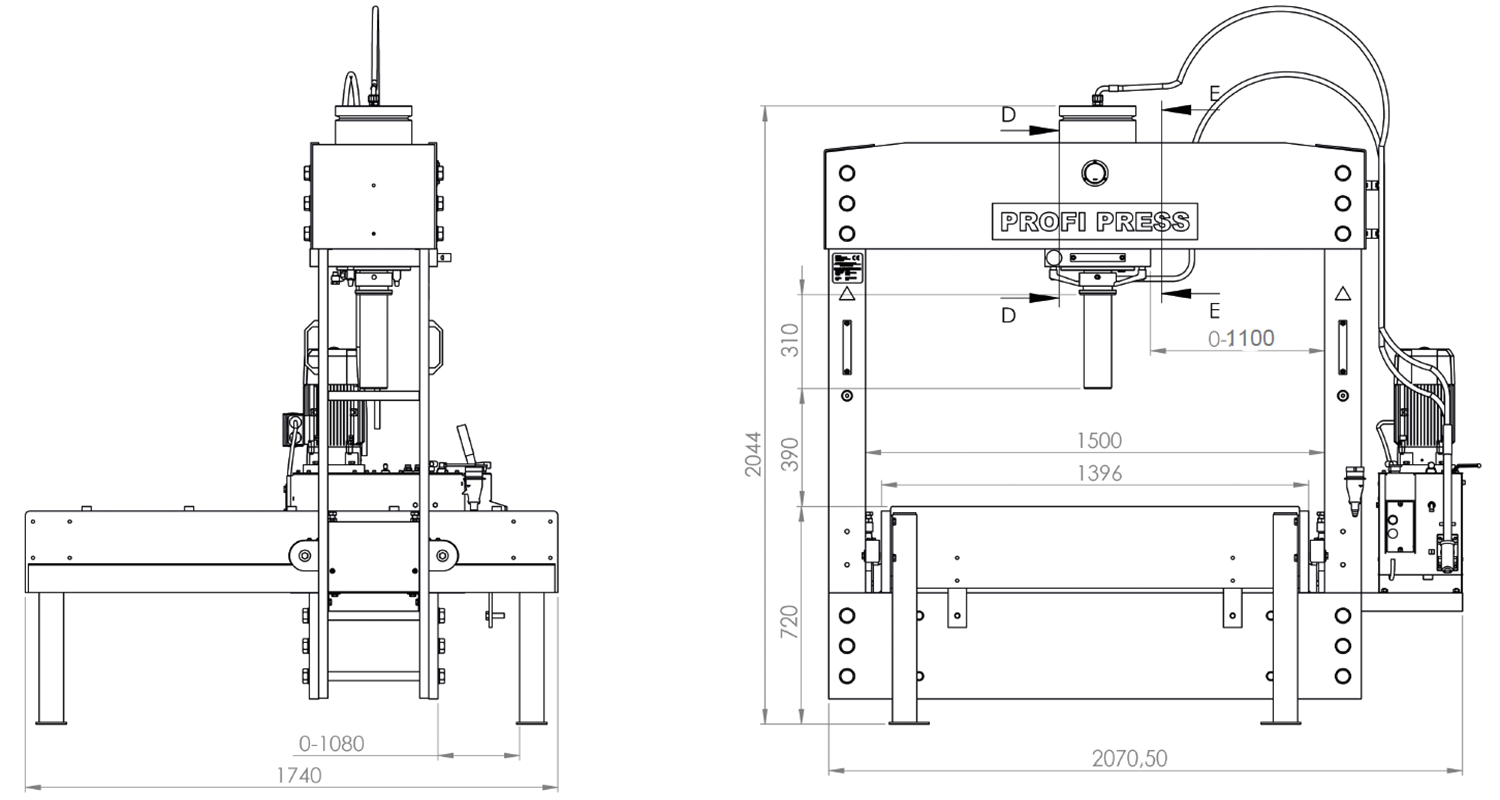 Equipped with a hydraulic unit featuring two-speed options, an integrated pressure manometer, and pressure regulation, this portal press delivers precision and adaptability across various jobs. It includes a joystick/directional control valve for smooth cylinder movement, as well as a hand pump for fine control, allowing for accurate adjustments during intricate operations.