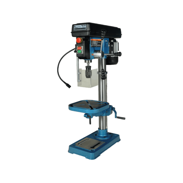 Professional-grade SCANTOOL 16AE V-belt driven drill press with advanced safety features, tilt-able working table, and auto lock chuck for versatile workshop and industrial use.