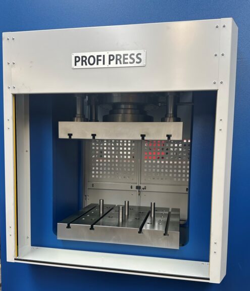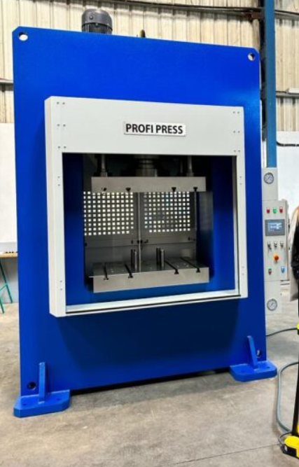 Fitted with a bespoke double-acting cylinder and a two-speed motorized hydraulic system, this press provides precision control for even the most complex tasks. The SIEMENS PLC, paired with an advanced 7” touchscreen interface, offers enhanced programmability, allowing operators to set custom stroke lengths, power levels, and dwell times. With expanded storage for over 200 custom recipes, this press is designed for high-efficiency, repetitive production runs, while maintaining the flexibility needed for bespoke manufacturing processes. Safety features, including custom-installed type 4 PLe photoelectric safety barriers, are adapted to your operational needs, ensuring maximum safety and productivity.