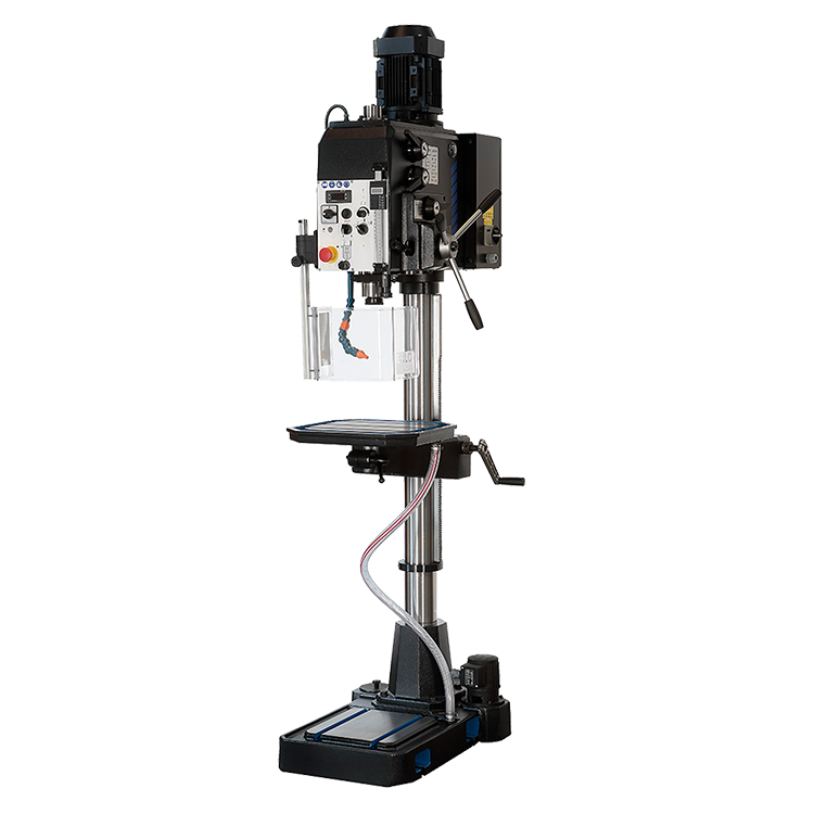 Engineered for industrial use, the TS.30 features hardened and ground steel gears for long life and stable power transfer. With a 120 mm spindle stroke and 1.1–1.4 kW motor, it offers smooth, precise performance across eight speeds (65–3060 rpm). Its heavy-duty cast iron base, column, and headstock ensure machine rigidity. Safety systems include a micro-switch drill guard, emergency stop, and separate low-voltage control cabinet. The fixed worktable with T-slots supports secure part clamping for repeatable operations, making the TS.30 an excellent solution for high-accuracy manual drilling.