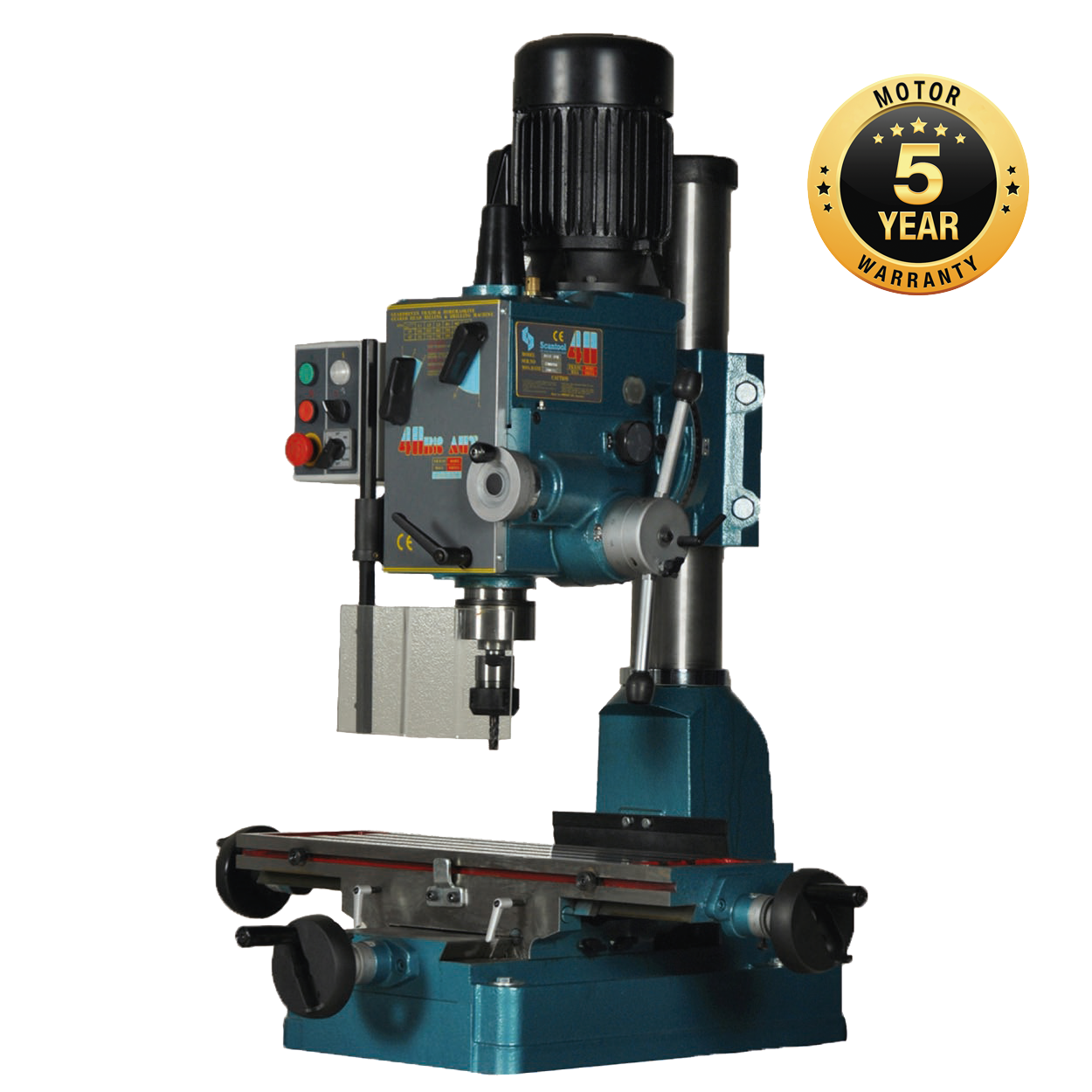 The Scantool 40BK AUT is a heavy-duty geared head milling and drilling machine designed for industrial use. Featuring a sturdy construction, this machine operates noiselessly with a tilting head for versatile operations. It is equipped with a 2-speed motor offering 12 spindle speeds, automatic feed, and reversible function. Ideal for demanding tasks, it ensures quick delivery and competitive prices.