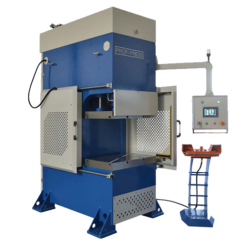 RHTC designed these Profi Press C-Frames with upper- and lower tables with DIN-650 T-grooves for quick and easy mounting of your toolsets. These presses are equipped with a ram cylinder and two auxiliary cylinders to achieve the high speeds. The hydraulic unit has an integrated air-oil cooling system.