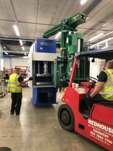 50 ton C Frame press being loaded onto the back of a lorry for delivery to a customer.