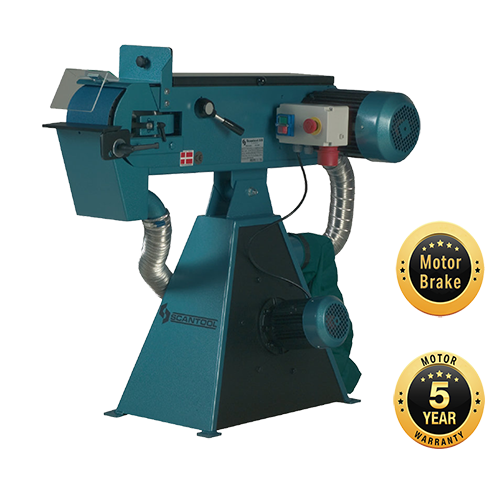 The SCANTOOL 100X Industrial Belt Grinder is a top-tier machine designed to meet the rigorous demands of workshops and industrial environments. This Danish-made, CE Certified grinder features a powerful 4.8 HP motor, delivering a consistent 3000 RPM for efficient grinding tasks. The grinder is equipped with a built-in double exhaust system, separate emergency stop, standard motor brake, and a quick belt change system for optimal safety and ease of use. With its simple and practical operation, easy adjustability, and a 5-year guarantee on the motor, the SCANTOOL 100X is a reliable and efficient choice for professionals seeking superior grinding solutions. EU Built for added assurance of quality and craftsmanship.