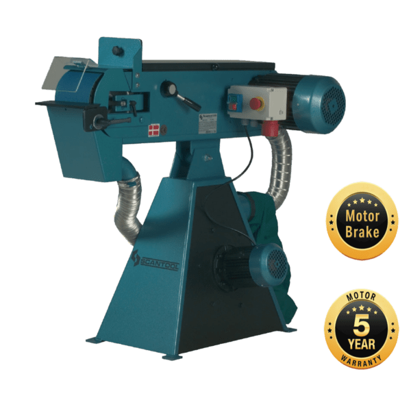 The SCANTOOL 150 Industrial Belt Grinder is engineered to meet the demanding needs of workshops and industrial settings. This Danish-made, CE Certified grinder features a powerful 4.8 HP motor, delivering consistent 3000 RPM for efficient grinding tasks. Equipped with a separate emergency stop, standard motor brake, and quick belt change system, the SCANTOOL 150 ensures optimal safety and ease of use. With its reliable performance, simple operation, and easy adjustability, this grinder is a dependable choice for professionals seeking top-quality grinding solutions. Backed by a 5-year motor guarantee, the SCANTOOL 150 is EU Built for superior craftsmanship and durability.