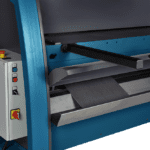 Modern design motorised power shears with a motorized back gauge, featuring the innovative RTO system for easy cut-piece retrieval. High-quality materials and ergonomic design ensure top performance and operator comfort.