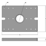 Work table for 100 Ton Motorised Workshop Press that can be used to mount tools, jigs, and fixtures has 16x M14 mounting holes and a large center hole that is 120 mm in diameter that can be used in conjunction with tools to expel swarf and slugs or can be used as a locating hole for tools.